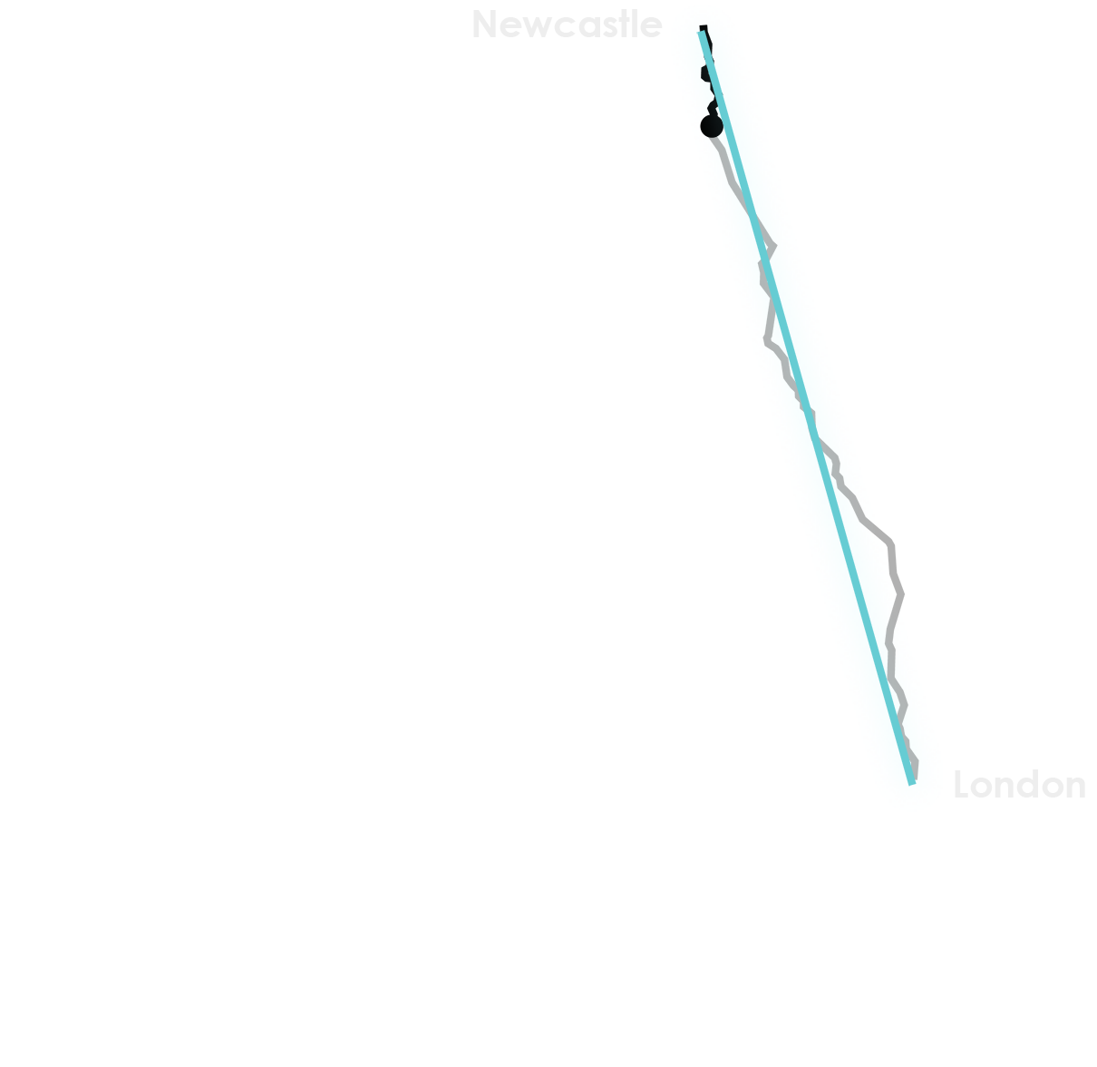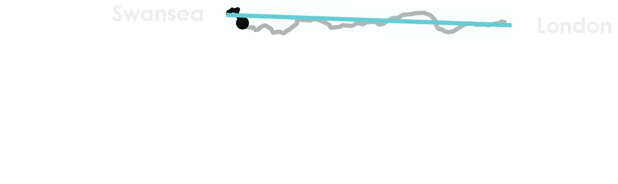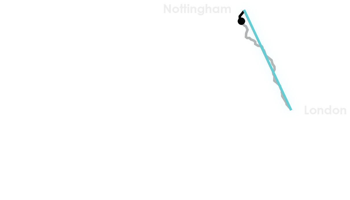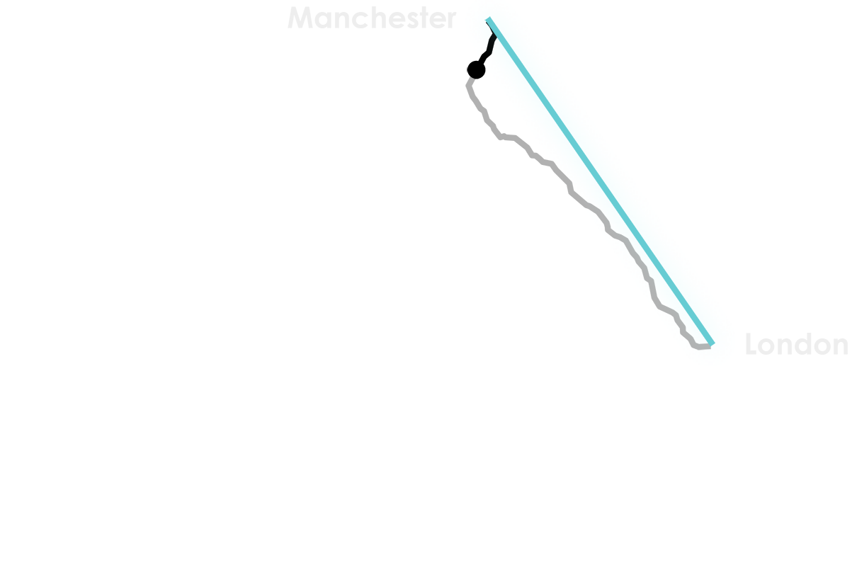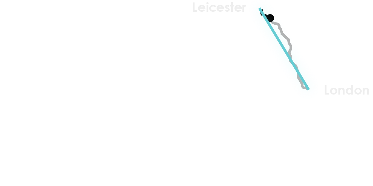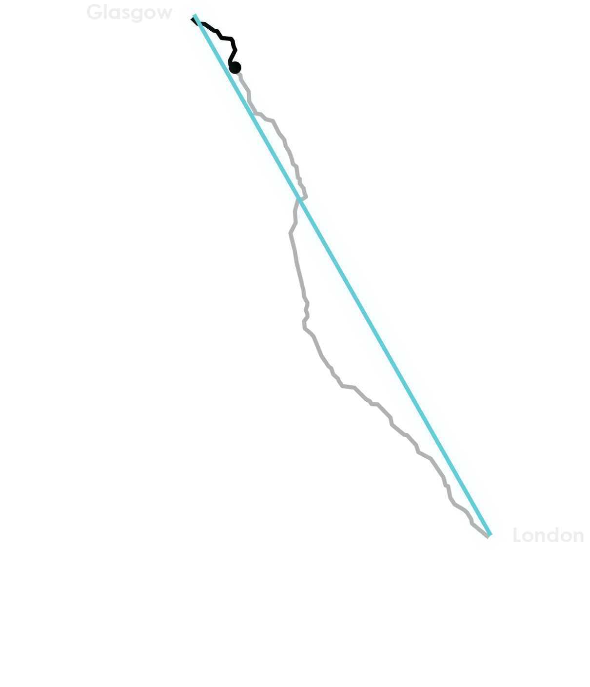 Distance train would have travelled by the time the Hyperloop reaches London. Train distance travelled when Hyperloop reaches London
