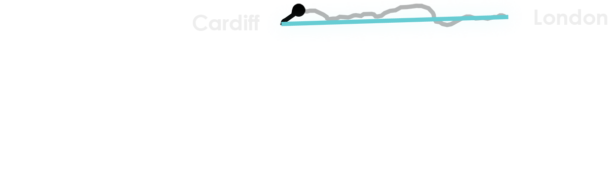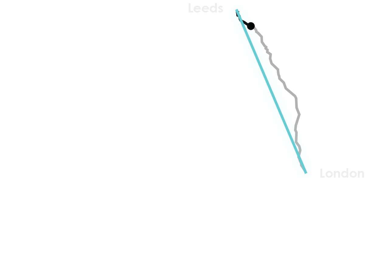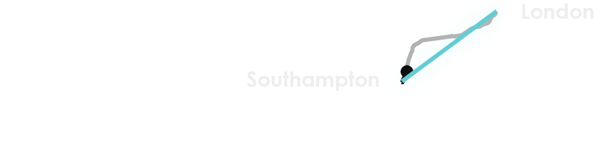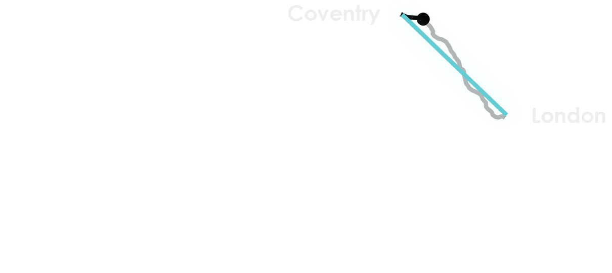 Hover overClick one of 20 major cities (⬤) in the UK on the map in order to see just how fast Hyperloop technologies will connect them to London.